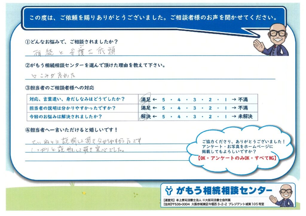 がもう相続相談センター(運営元:本上崇司法書士法人)は、「人の役に立つ」という理念に基づいて設立された相続相談センターです。 人は誰かの役に立つことで、その方の笑顔を見て、自らも幸せを感じられると考えています。 私たちは、お客様の役に立ち、お客様とともに幸せを分かち合える企業へと成長していくことを目指します。 |